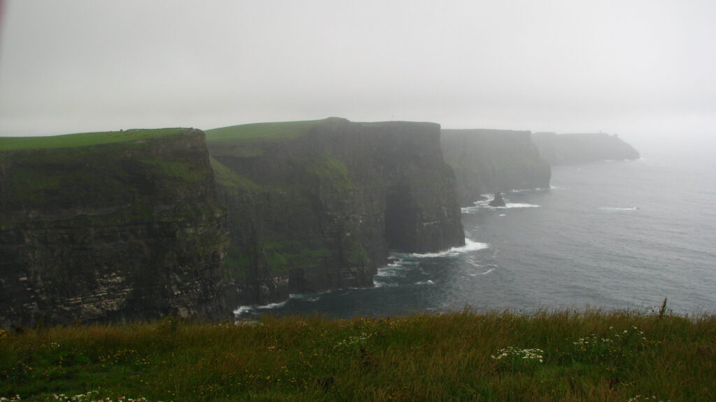 We eventually reached the Cliffs of Moher, where green hills used for cattle grazing suddenly drop hundreds of feet into the Atlantic.