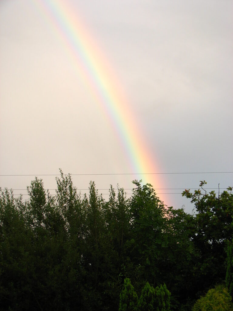 It had been misty all day, but almost appropriately, as soon as we headed down to catch the ferry back to Galway, it started pouring rain. We took cover under the eve of a small shed and waited for it to pass. When it finally did, we were treated to a beautiful rainbow running from the land into the sea. An Irish rainbow. Lucky right?