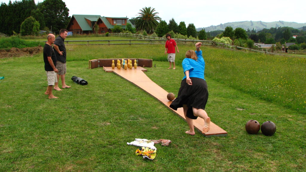 The rest of Christmas day was pretty similar to back home. A couple little ones ran around like chickens with their new toys; the ladies chatted about kids and gossip over cups of tea, the men talked about farming and sports around bottles of beer. Before long though, the rain cleared, and we all ended up outside – to watch some bowling. Yeah, that’s right – bowling.