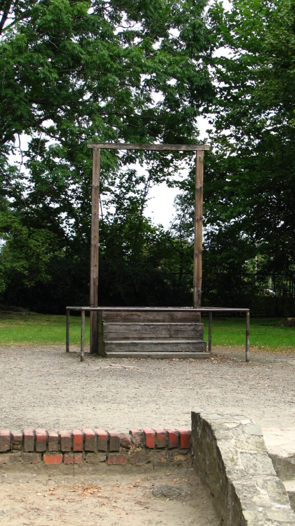 Our guide collected us, and walked us toward the rear of the crematoria, where a lonely wooden gallows stood. She explained to us that after the war, the former commandant of the camp, a man (probably not the right term) named Rudolf Höß (Hoess), was found and tried for war crimes in Nuremburg. He ended up admitting everything, and was eventually sentenced to death. At the request of the Polish people, in 1947 he was hanged right here, in full view of the crematoria where he sent so many people to die.