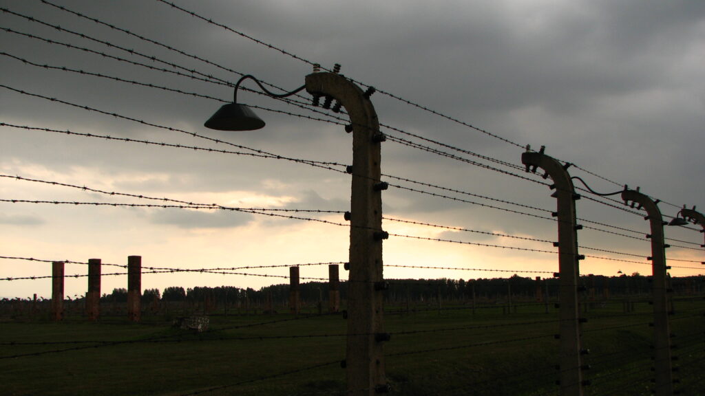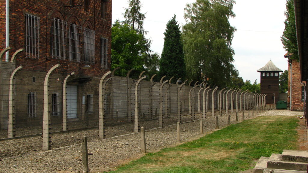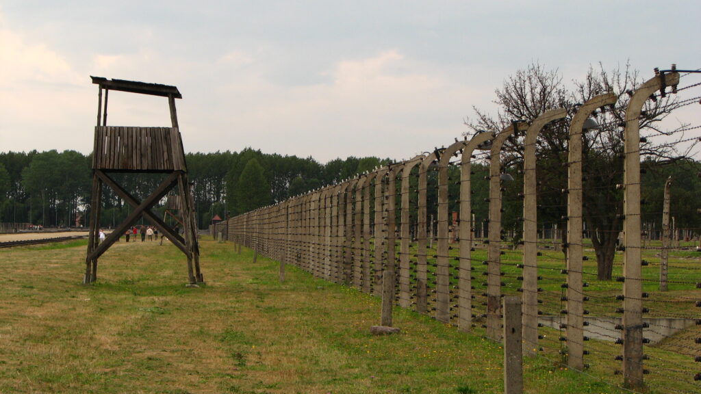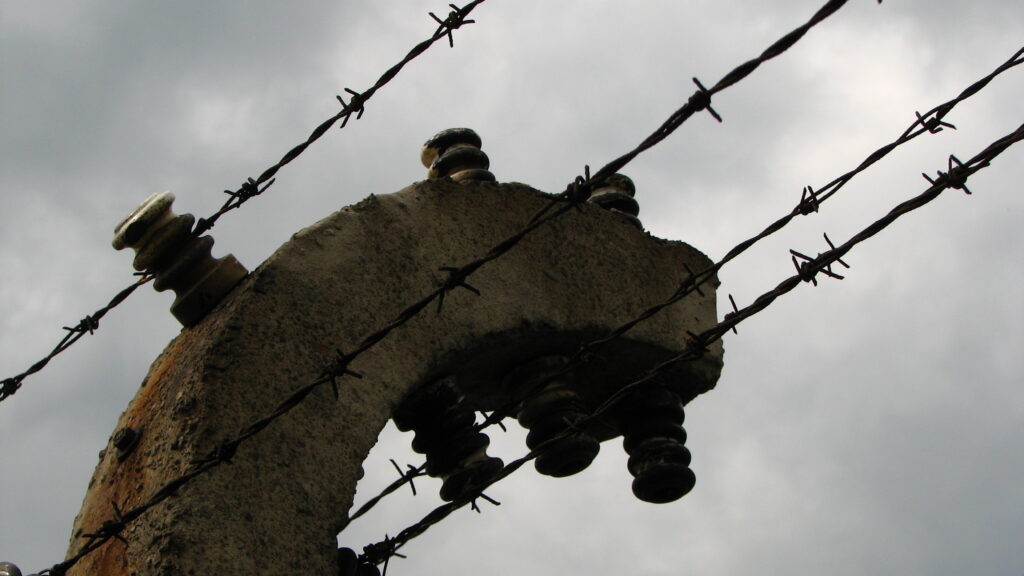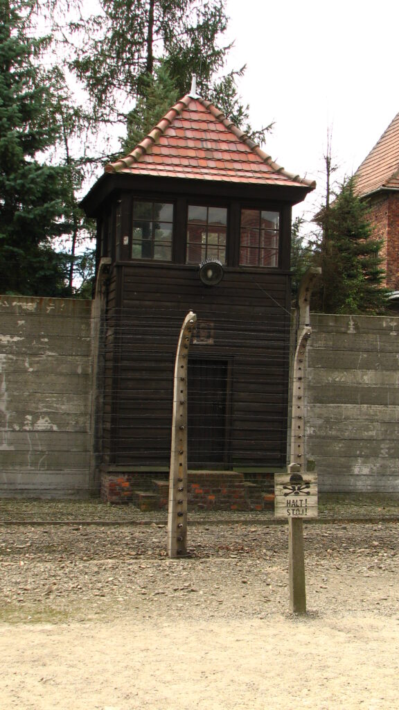 Signs labeled “Halt!” and “Stoj!” with skulls and cross bones were visible at regular points along the barbed wire fences. Looming over the tops of the fences at the corners and midpoints were wooden guard towers.
