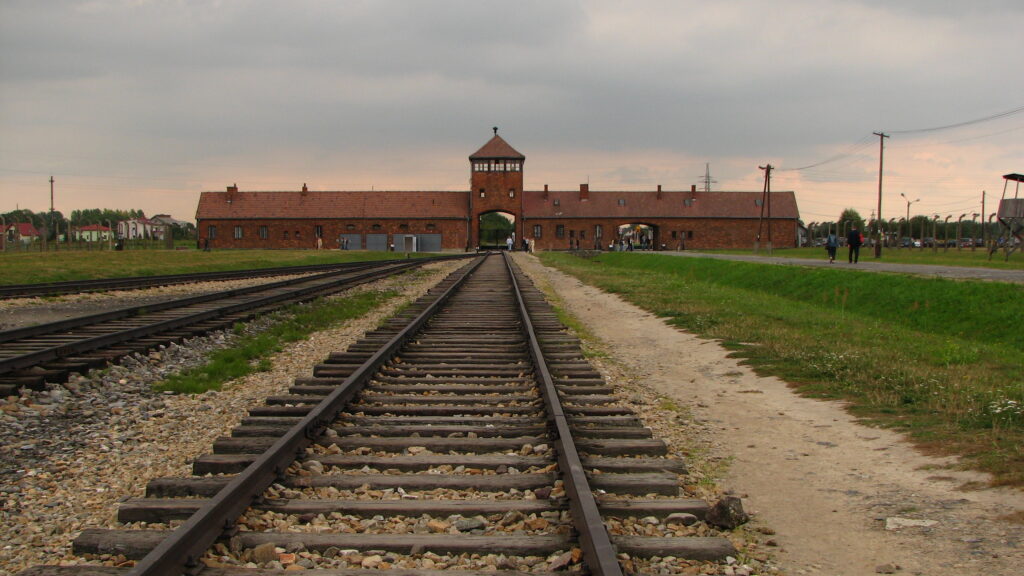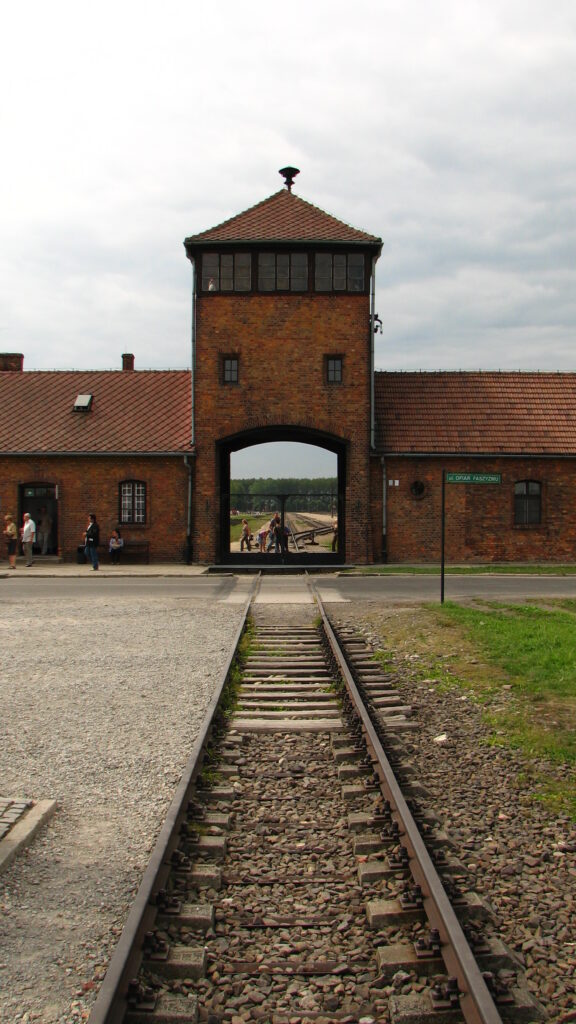 From the bus, I could see the familiar shape of the guard house and watchtower. I remember it from Schindler’s List – and as we passed the train tracks leading into the building’s curved mouth – “The Gate of Death”, I remembered the scene of the cattle cars full of people headed into the camp. It sent shivers up my spine.