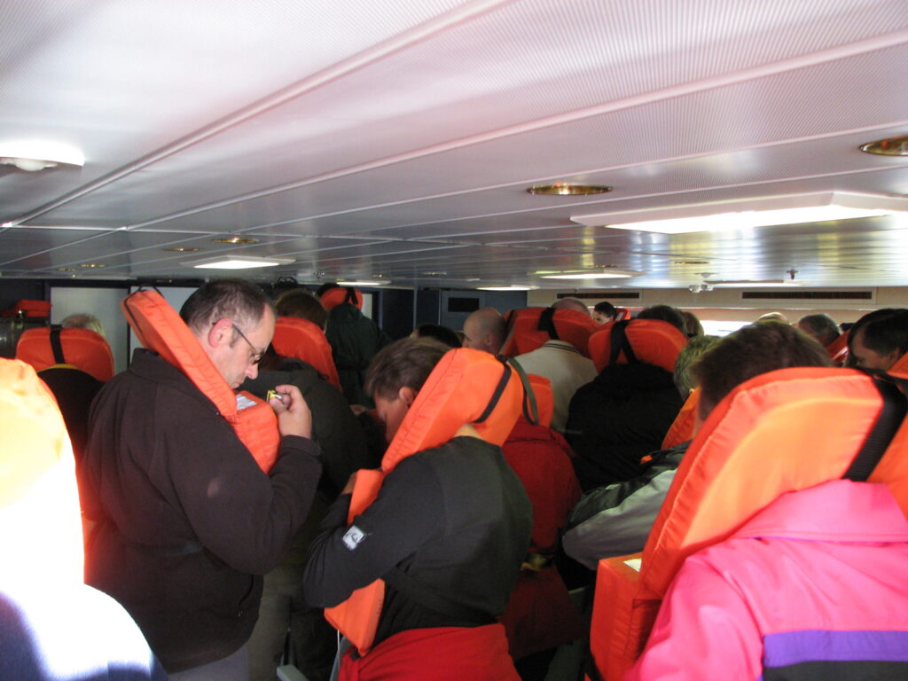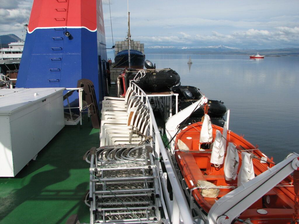 The Beagle Channel is pretty long – Long enough for us to be in it for the next two or three hours. About thirty minutes after our departure, we had a mandatory life jacket check which was amusing. All 103 passengers, plus several of the staff and crew standing in the lecture hall with huge orange life jackets on. It was comical.