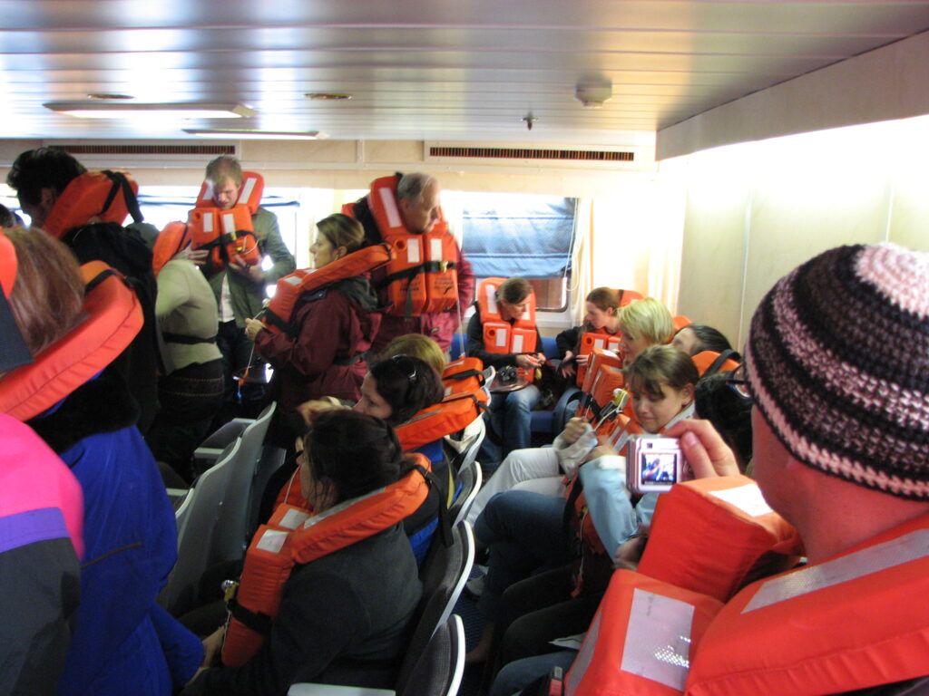 We then walked out to the lifeboats and got an explanation of what to do if the alarm sounded. Those of you who know me won’t be too surprised that I immediately started thinking about Titanic and Kate Winslett and being stranded in freaking cold water. The crew explained that there were more than enough spaces for everyone, and then some. All the stuff you don’t want to think about, but are glad someone has.