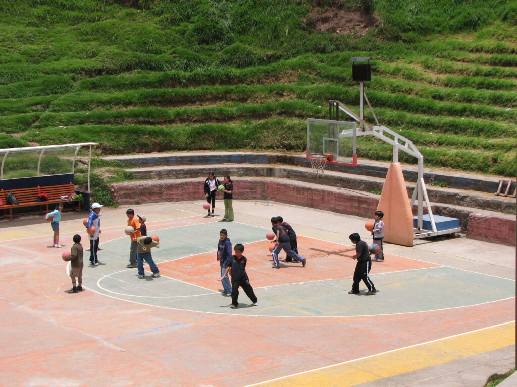 As with most of my bus rides though, the rest of the trip was gorgeous – where the areas between Lima and Nazca were dusty, windswept plains and rolling mountains, we were now climbing up into jagged, forest-green peaks. White cottony clouds draped themselves around their tops, ghost-like arms reaching around and holding them. Much of the land was beautifully terraced for farming – dominated by tall green stalks of corn growing strong. All types of livestock roamed the side of the roads – cattle, sheep, goats and pigs. Most of them were bound by a rope tied around their horns or necks with the opposite end tied to a stake jammed into the ground, allowing the critters a 20-30 foot grazing area. We passed trickling water falls and crossed bridges over muddy mountain rivers. From time to time we’d swerve to the right or the left, dodging rocks that had fallen from the cliffs above during last night’s rain. At one point we were passing through a small village when the bus jerked and came to a screeching halt. I looked up to see a bunch of animated people laughing and pointing in our general direction. A trio of horses had broken loose and was running wild in the streets. Why not?