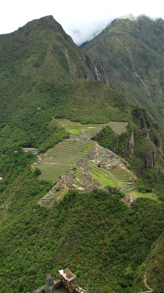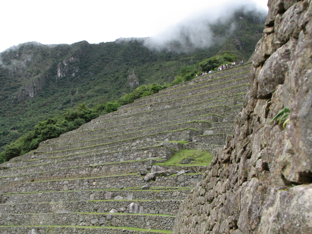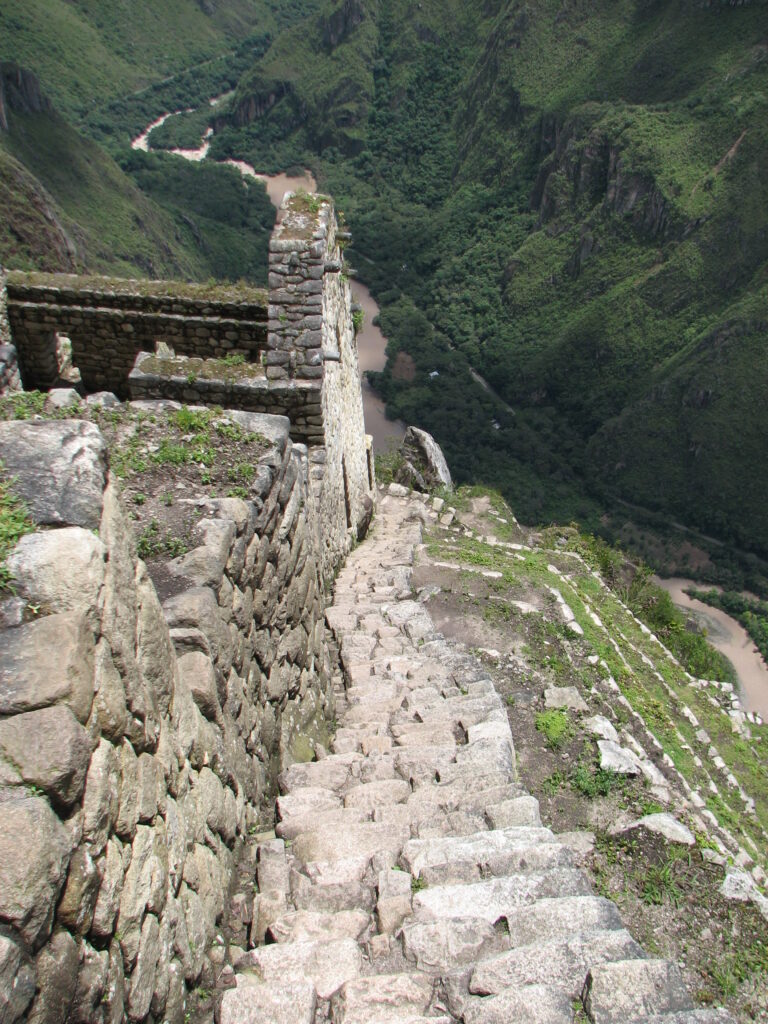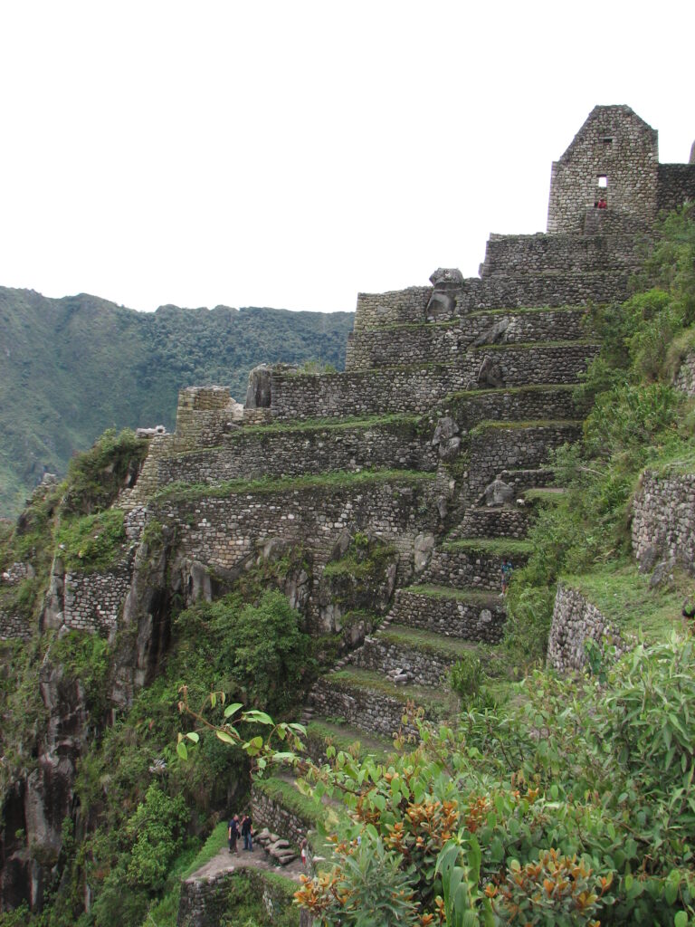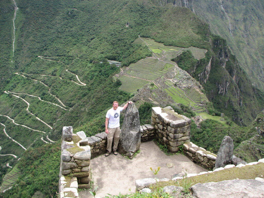 After about 65 minutes of torture, we reached the top (a set of ruins unto itself) – and it was worth every gallon of sweat. We were offered tremendous views of the Machu Picchu ruins (now behind us) which were almost tiny in the distance. It was a gorgeous sight.