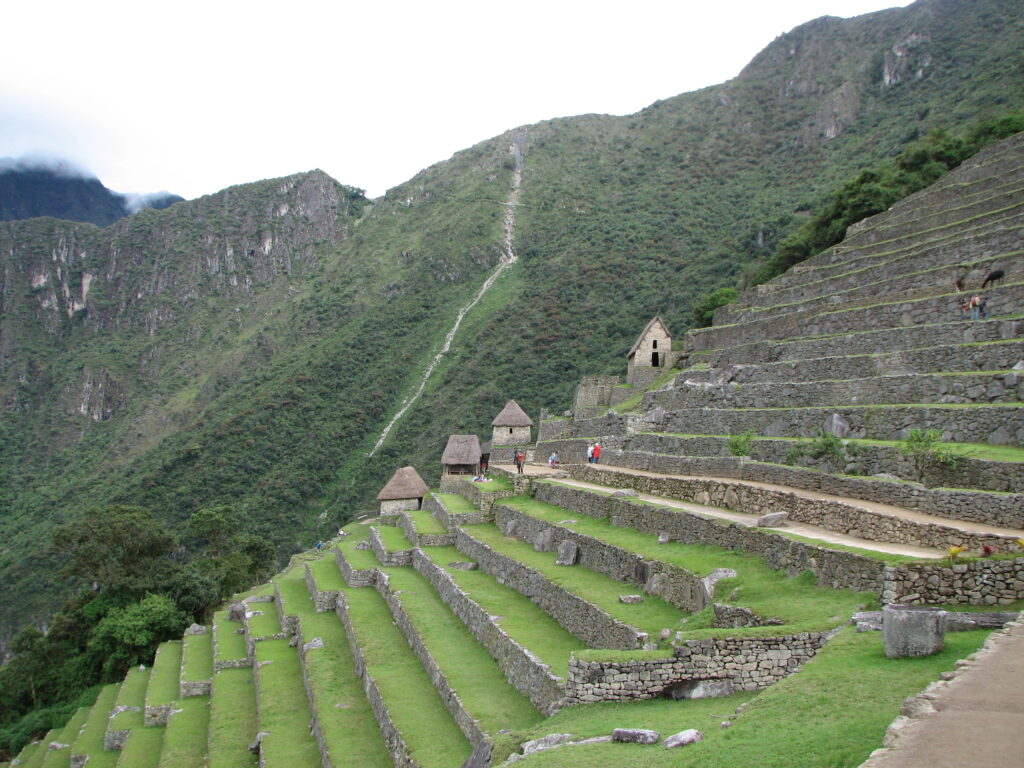 Mark and I stood looking for a few minutes. We then set about our plan to cover as much as possible in the time allowed. It was about 11:00, and our train back in Aguas Calientes left for Cuzco at 4:00. The tall mountain in the back of the picture everyone has seen is actually called Huayna Picchu, and actually has a set of ruins atop it, supposedly offering a spectacular view of the “main” ruins.
