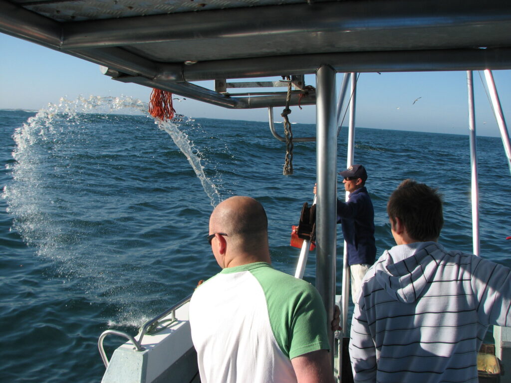 Our destination was already marked by three or four other boats from competing companies. We were told that our cage was already floating in the water somewhere. Though I really don’t know how, we found it really easily, and pulled up to retrieve it. We then motored out to an open spot a few hundred feet away from the nearest boat, and dropped anchor.