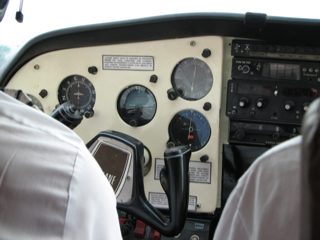 From the outside, the plane actually looked fairly well-kept and dare I say, even new. Gleaming white paint, and even some .com addresses strategically placed on the wings and support struts. Inside, however, was a different story. The instrument panel looked circa 1960’s, the seats were covered in fake leather, worn and cracked, and the floor had badly faded carpeting with stains I could only assume originated from “sufferers of motion sickness”. Sweet.