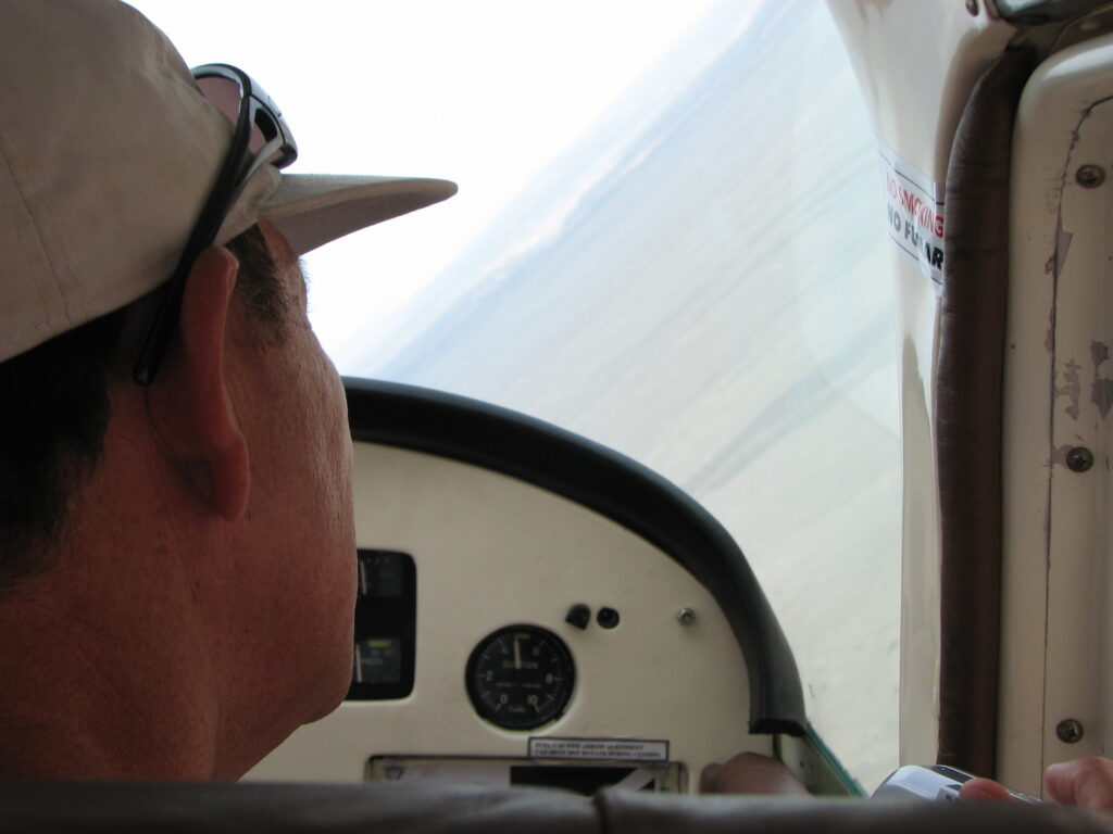I quickly figured out there are only three states for this little flying coffin. 1) semi-level, 2) left wing pointed down at an 80 degree angle, and 3) right wing pointed down at an 80 degree angle. Coming to grips with this, I took a few deep breaths, said a super-speed power prayer, and sucked it up. The next 25 minutes was simply pain and discomfort with varying degrees of intensity. We’d go straight for a while, then he’d bank the hell out the plane and shout “On the left you see the astronaut!” Then crank it to the right and yell “Now you see the hummingbird!” It was surreal. I felt like I was watching myself in the little plane. “You dummy. What the hell are you doing in there?” I asked myself. I didn’t answer.