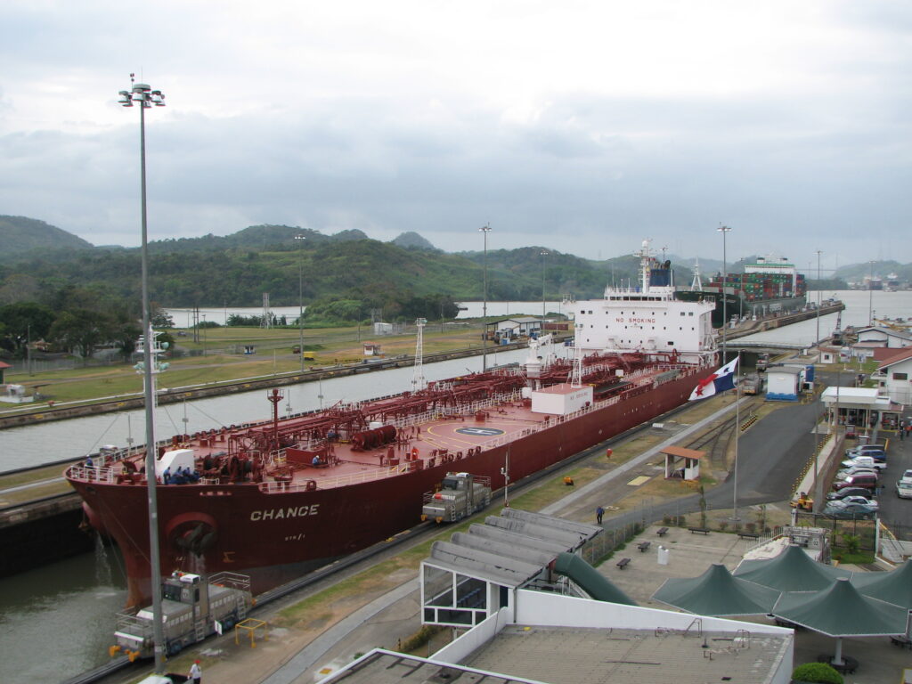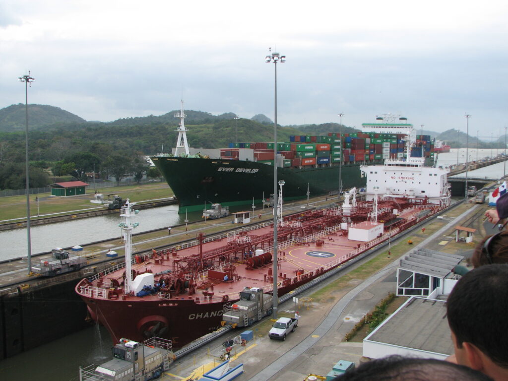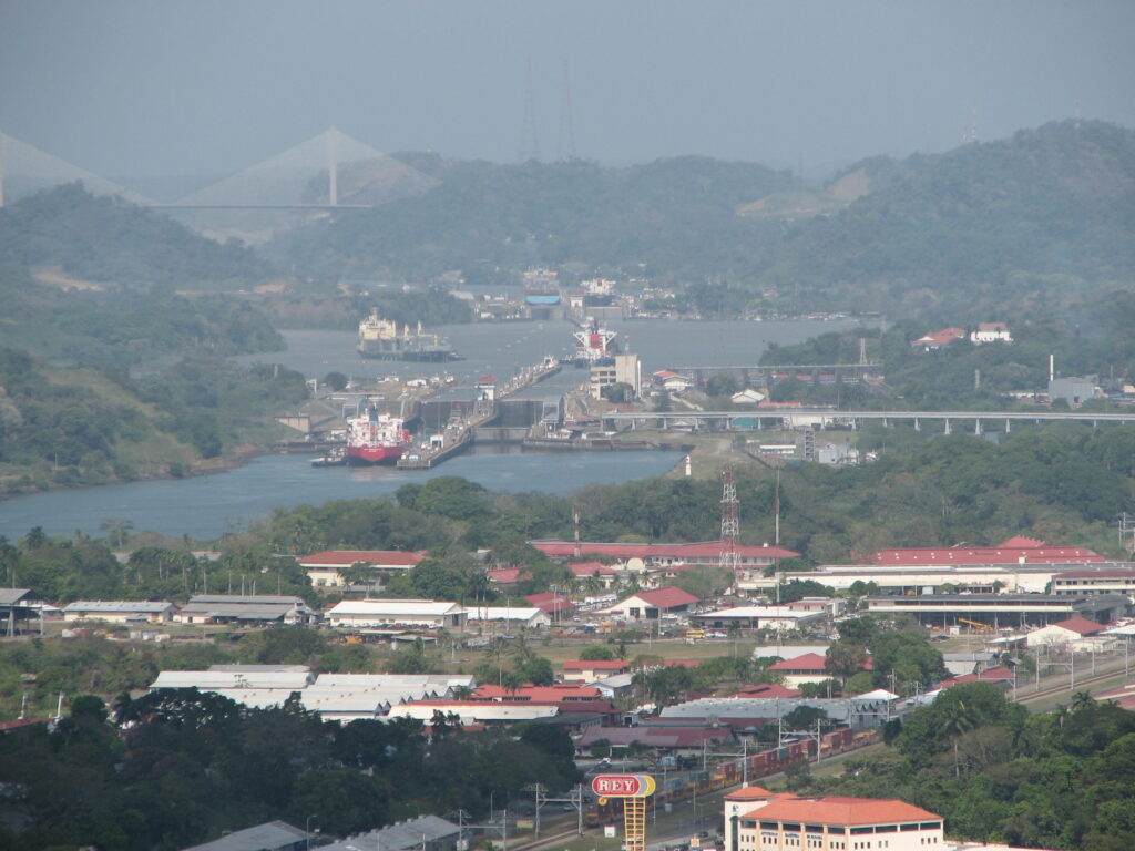 The doors close behind it, then the water drains out of the lock, lowering the ship to the level of the next lock. Then the doors in front of the ship open, the locomotives guide the ship into the next lock, the doors close behind it, and the water drains out, lowering the ship to sea level. It’s really quite amazing. The whole thing takes a while, but much quicker than I had anticipated. We saw a ship get through the two Miraflores locks in about 30 minutes or so (don’t hold me to that). It’s quite the operation. As soon as a ship gets through a set of locks, they immediately start filling up with water for the next ship. There are two fully independent sets of locks, allowing two ships to move through in either direction at the same time. It’s an engineering marvel.