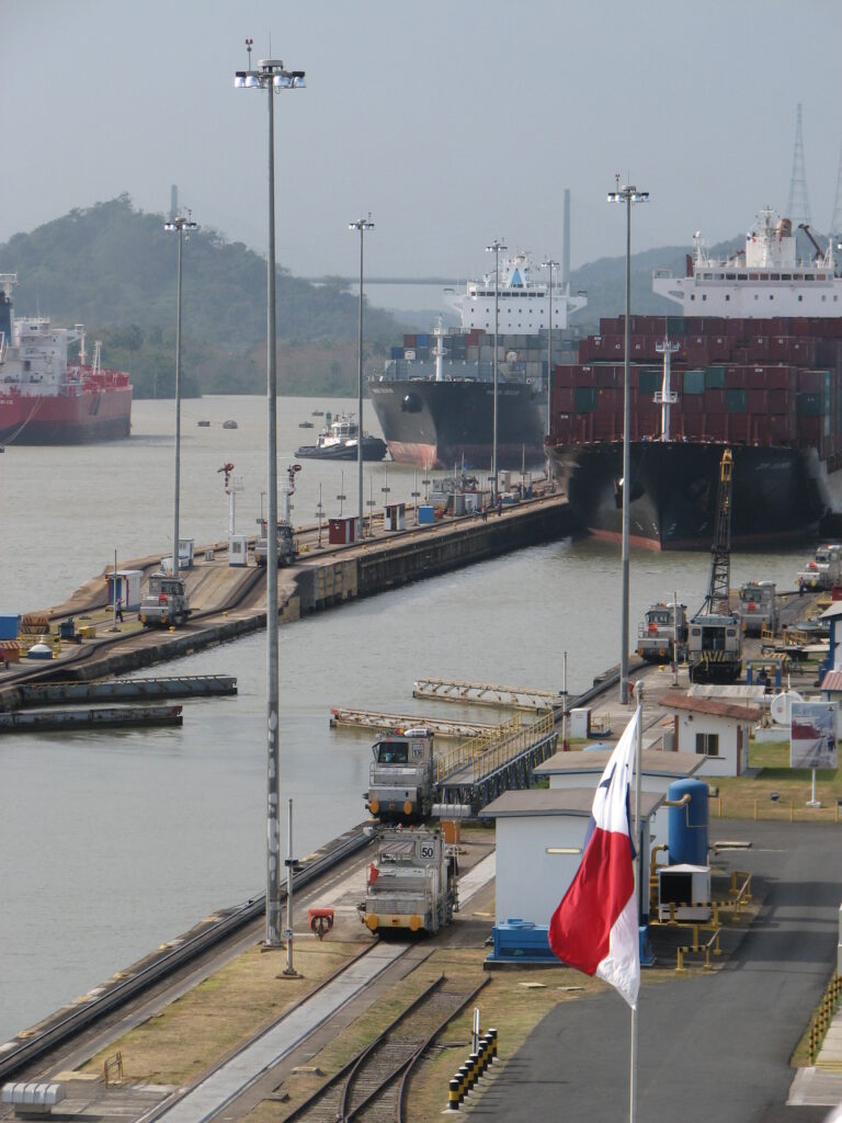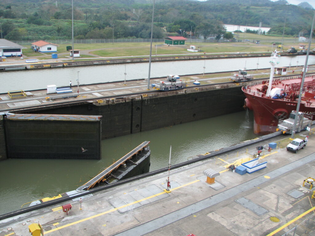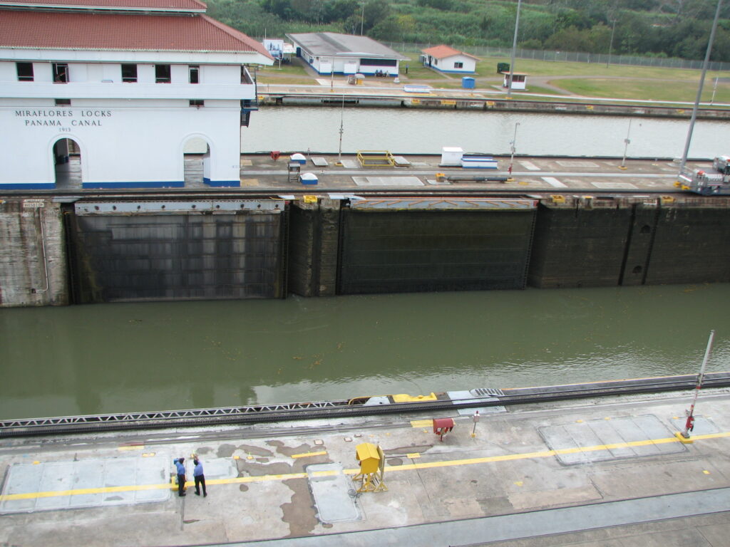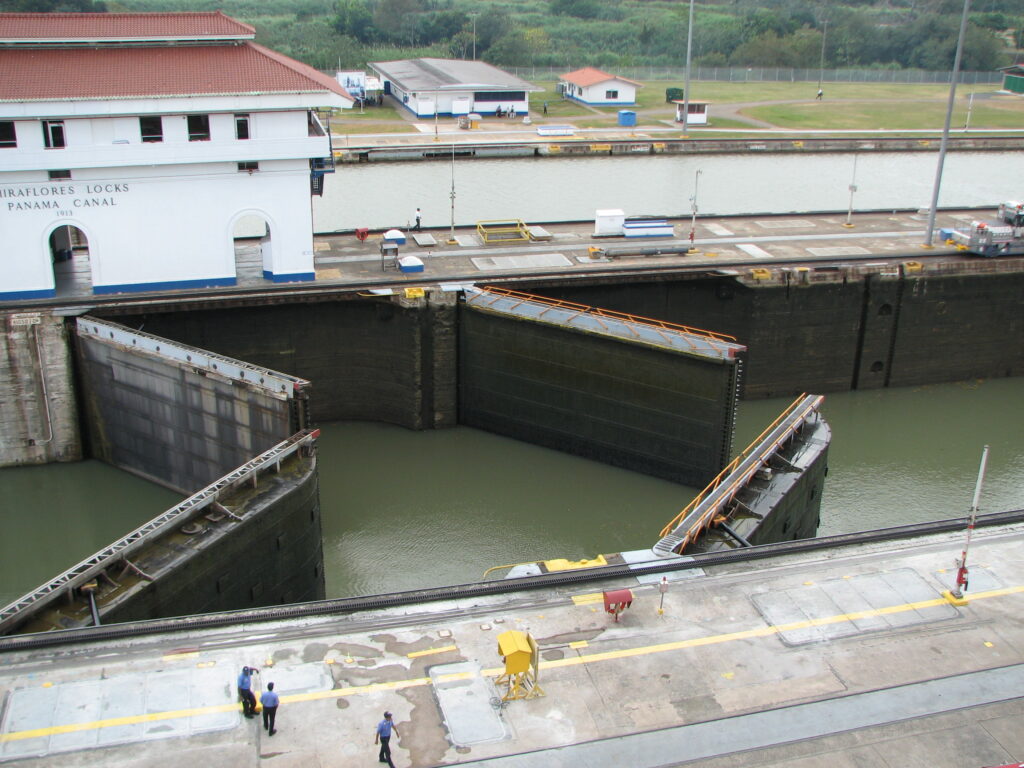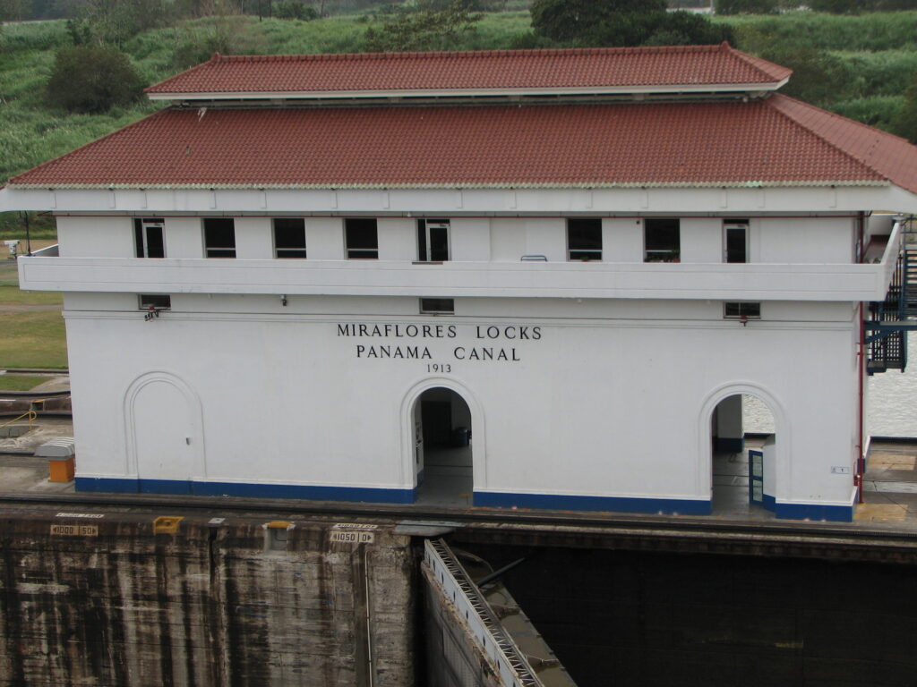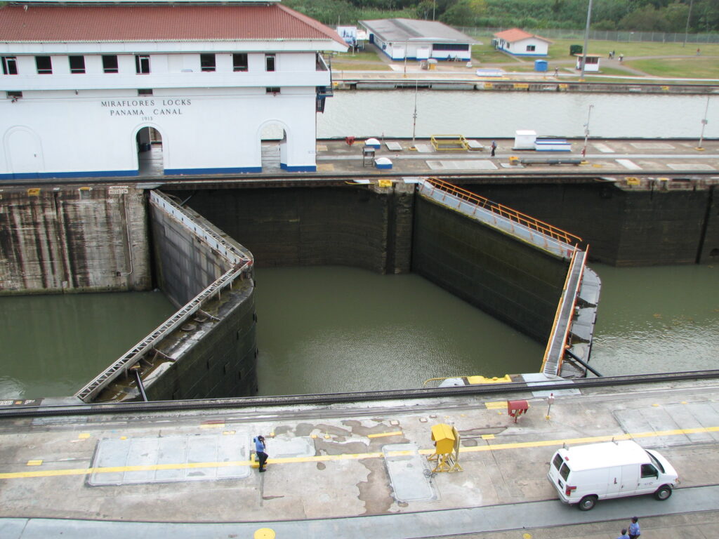 It’s really hard to explain the details of the locks without having a frame of reference. Essentially, ships move from sea level on either the Caribbean or Pacific side of Panama to about 80 some feet above sea level as they cross through Miraflores Lake, then back down. The locks are long containers of water held by large doors that open and close on demand.