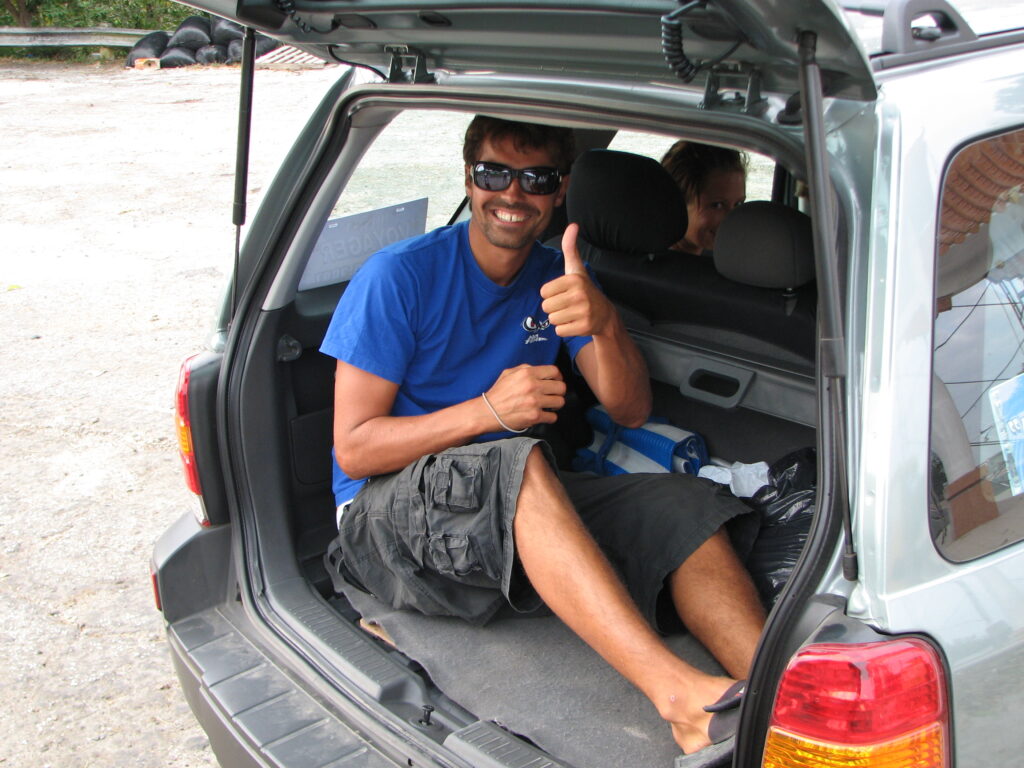 Expecting to get on a shuttle bus or a small van, I was actually excited, yet nervous to see “Lupe” heading to her little Ford Escape. Yup, Lupe was taking us in her own car, but one a little too small for all of us. Unselfishly, the Swedish guy volunteered to sit in the very back, the cargo area under the hatch. Lupe seemed cool with that, so off we went.