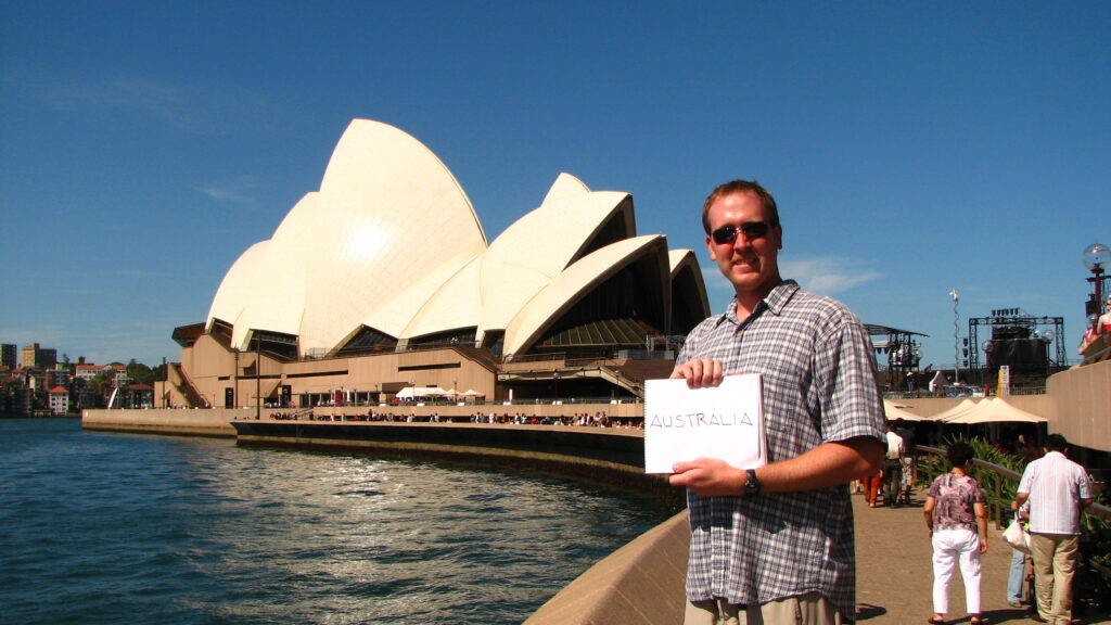 I had always planned on using the Opera House for this shot, but once I headed out to Uluru, I had some second thoughts. There are few more “Australian” images than the massive Uluru in the morning light. However, getting a usable shot of me with the entire rock and the sign turned out to be a challenge. Once I saw the Opera House though, I knew I had it.